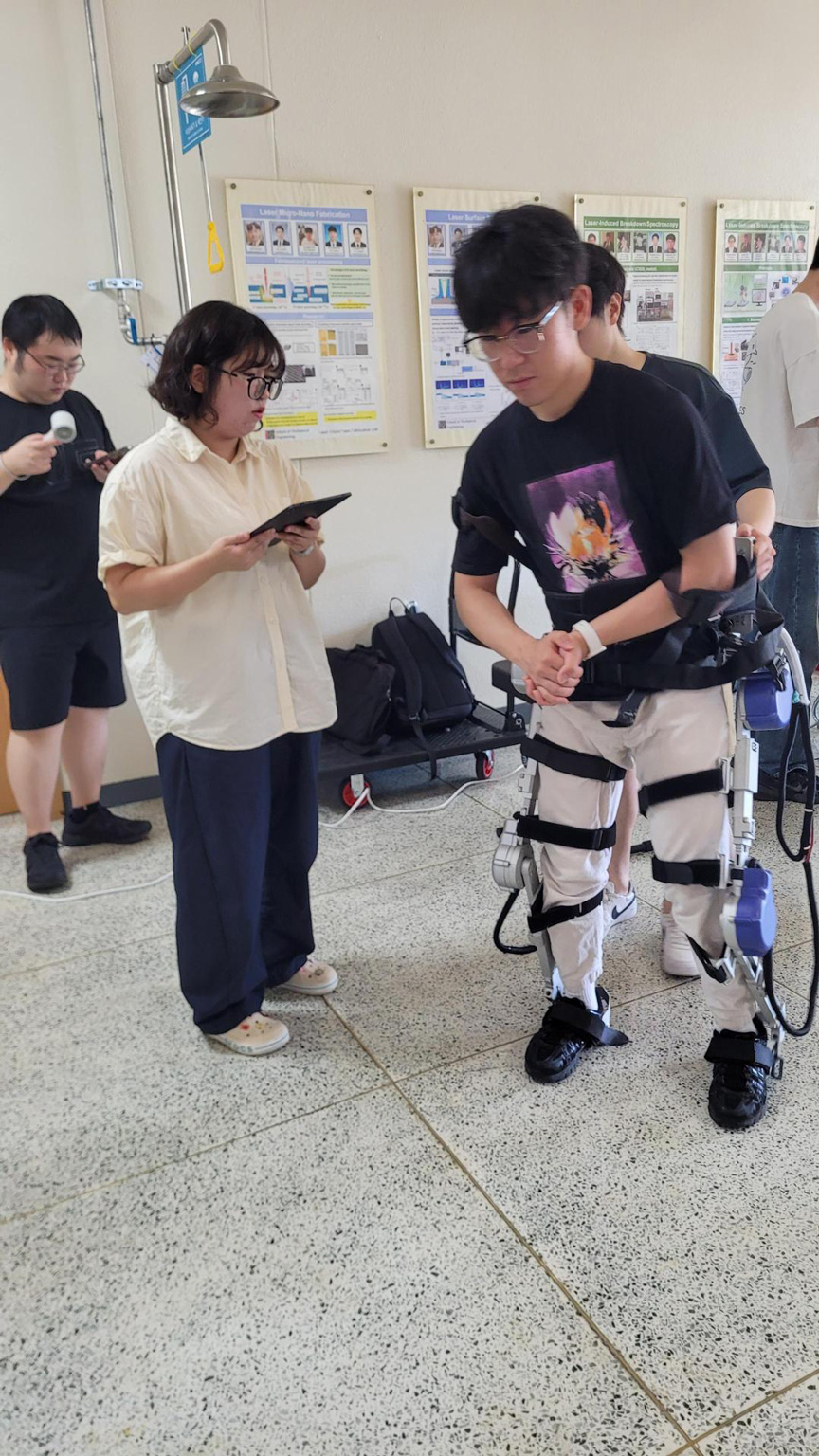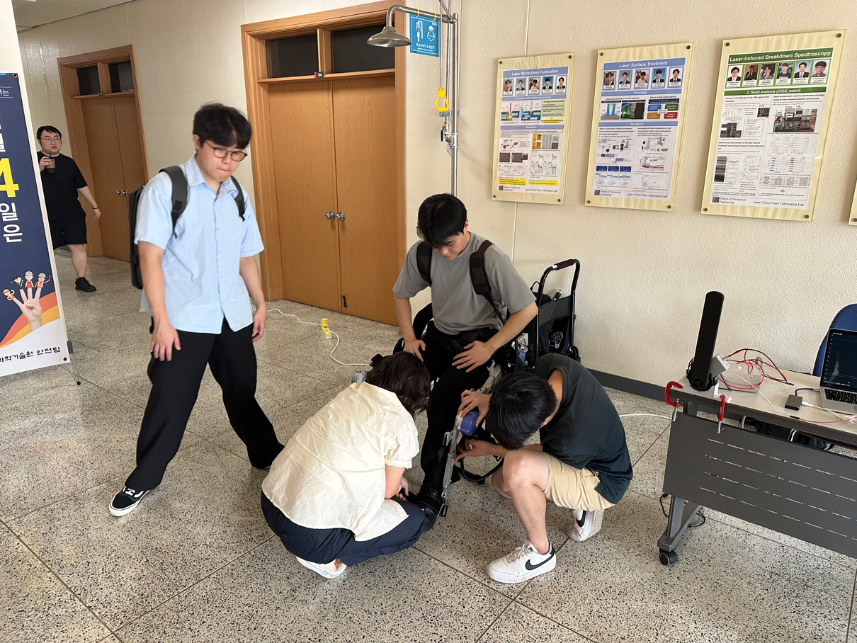 착용형 보행 외골격 로봇: 학생들이 직접 착용하여 보행 보조 기술을 체험