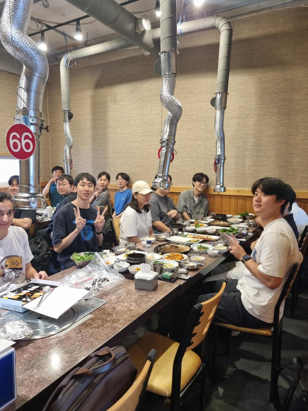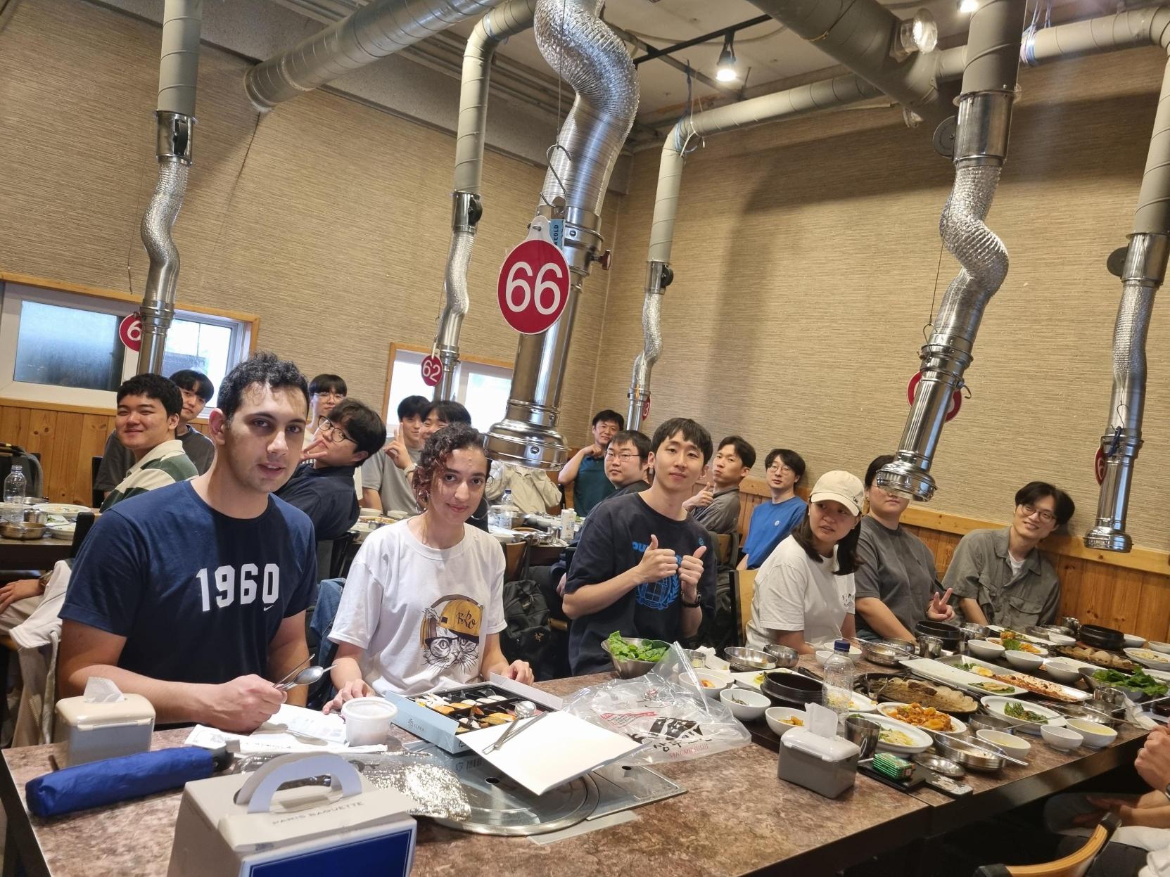 JC가 끝난 후, 연구실 전원이 함께 학교 정문 바로 옆에 위치한 꽃담으로 이동해 맛있는 점심 식사를 즐겼습니다. 신입생들과 기존 연구원들이 자연스럽게 어울리며 이야기를 나누는 따뜻한 시간이었습니다.