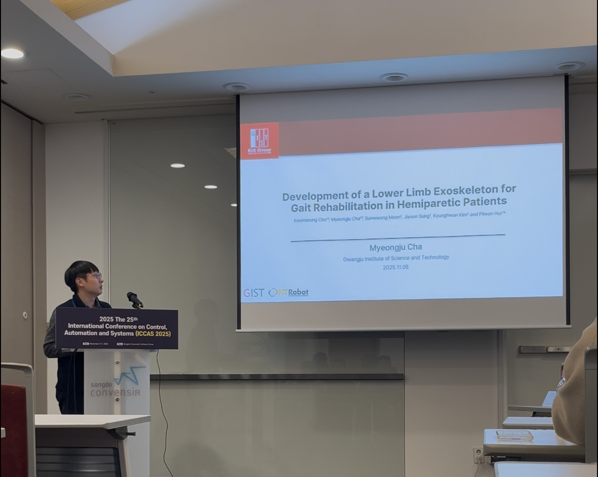 ICCAS 2025는 최신 제어 및 로봇 기술의 동향을 파악하고, 다양한 연구자들과 교류할 수 있었던 뜻깊은 자리였습니다. 특히 이번 학회에서 수상의 영광까지 함께하게 되어 더욱 의미 있는 시간이었습니다. 앞으로도 우리 연구실은 재활 로봇 및 인간 친화적 로봇 기술 연구에 더욱 매진하겠습니다. 연구실 소식에 많은 관심 부탁드립니다!