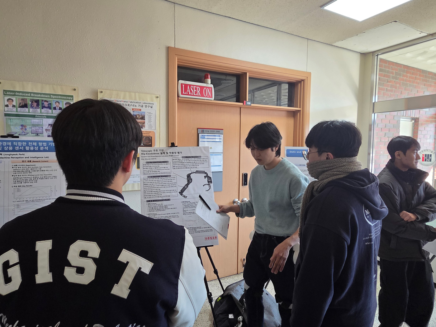2025년 12월 9일, GIST 기계공학부 학사논문 발표회가 열렸습니다. 기존의 PPT 발표 형식에서 벗어나 올해는 포스터 발표로 진행되어, 보다 자유롭게 연구 내용을 공유하고 심사위원 및 참관객들과 깊이 있는 대화를 나눌 수 있었습니다.